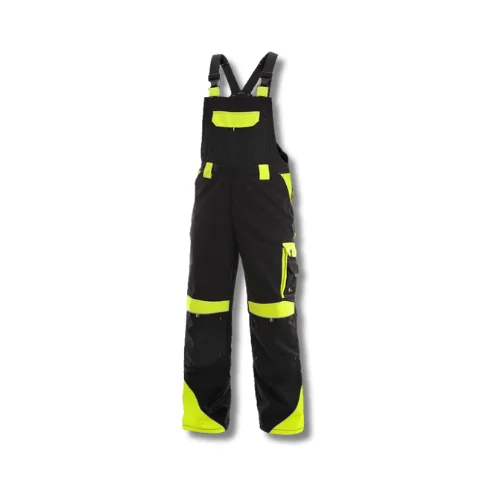 Ypač tvirtas ir atsparus dėvėjimuisi drobinio pynimo (CANVAS) puskombinezonis darbui SIRIUS BRIGHTON su šviesą atspindinčiomis detalėmis. Ryškiaspalvio geltono audinio elementai skirti geresniam matomumui užtikrinti. Kelnių keliai pastiprinti dviguba medžiagos kloste, galimybė įkišti antkelius. Petnešų ilgis reguliuojamas, pritaikant rūbą patogesniam naudojimui. Juosmens srityje – kilpos diržui. Sagomis ir elastine guma reguliuojama juosmens apimtis. Daug patogių lipdukais užsegamų daugiafunkcinių kišenių priekyje, šonuose ir nugaros srityje.