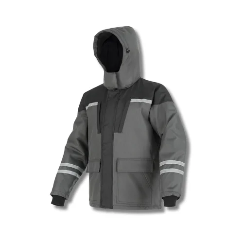 Itin tvirtos CANVAS medžiagos neperpučiama žieminė darbo striukė STEPO NEW KAUKAZ puikiai apsaugo nuo šalčio. Užlydytos siūlės iš vidaus neleidžia vandeniui prasiskverbti pro jas. PU impregnavimas atstumia vandenį ir drėgmę. Užtraukiama dvipusiu užtrauktuku, paslėptu po atvartu. Šviesą atspindinčios juostos ant krūtinės, nugaros ir rankovių. Vidiniai mandžetiniai rankogaliai apsaugai nuo sniego ir šalčio. Erdvus, pašiltintas, reguliuojamo dydžio gobtuvas. Švelni ir šilta Fleece audinio apykaklė. Striukės apačia vidinėje dalyje reguliuojama raišteliais. Prailginta nugaros sritis. Kišenės užtraukiamos užtrauktukais arba užsegamos lipdukais.