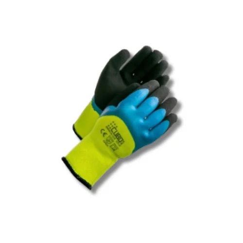 Megztos žieminės pirštinės, aplietos minkšto dviejų sluoksnių latekso puta.