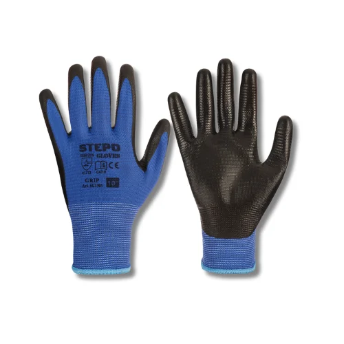 Darbo pirštinės STEPO GRIP aplietos storu banguotu nitrilu. Gerai sukimba su įvairiais paviršiais, puikiai priglunda prie rankos.
